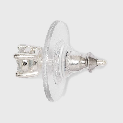 Women's Sterling Silver Stud Earrings Set With Round Cubic Zirconia 3pc – A New Day™ Silver